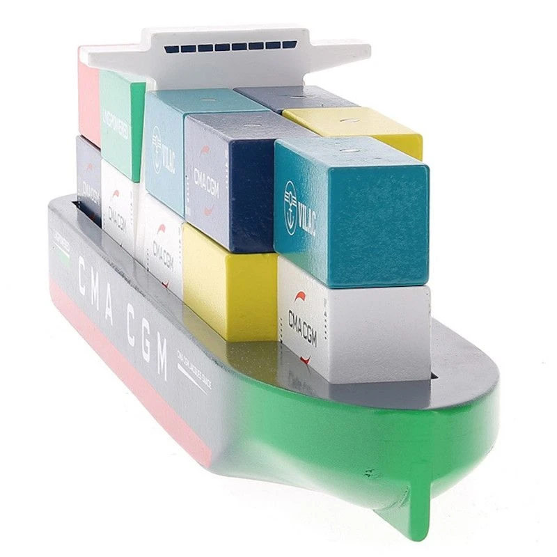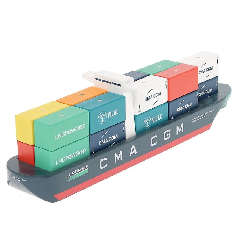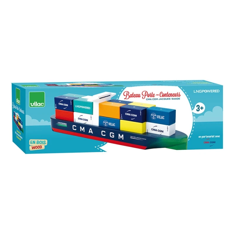 ✎ Les Jouets en bois Bateau Navire Porte conteneurs Jacques Saadé CMA CGM Vilac® détails