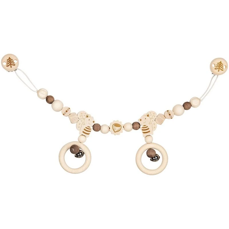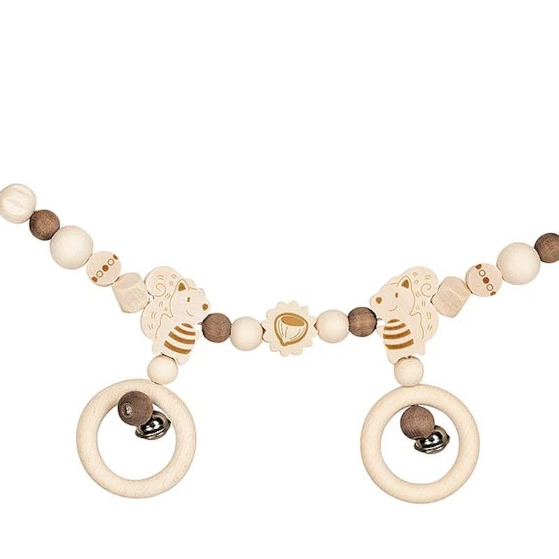 Pour les petits fans de forêts dés 2 mois et pour développer attention et dextérité, éveil physique et émotionnel, cette jolie Chaîne de poussette en bois Ecureuil Heimess® aux couleurs naturelles est amusante, douce et accompagnera bébé lors de ses promenades, ses moments d’éveil et d’endormissement. Une chaîne de poussette d’éveil avec ses 2 hochets d’activités à grelots et ses jolies perles en bois en formes de billes, de noisettes, et de petits écureuils… le tout à suspendre pour permettre à bébé de stimuler ses petits muscles en découvrant les mouvements, les tintements des hochets, et les autres bruits produits par le mouvement des pièces qui le compose. Tout est fait pour stimuler bébé dans son apprentissage et son développement.