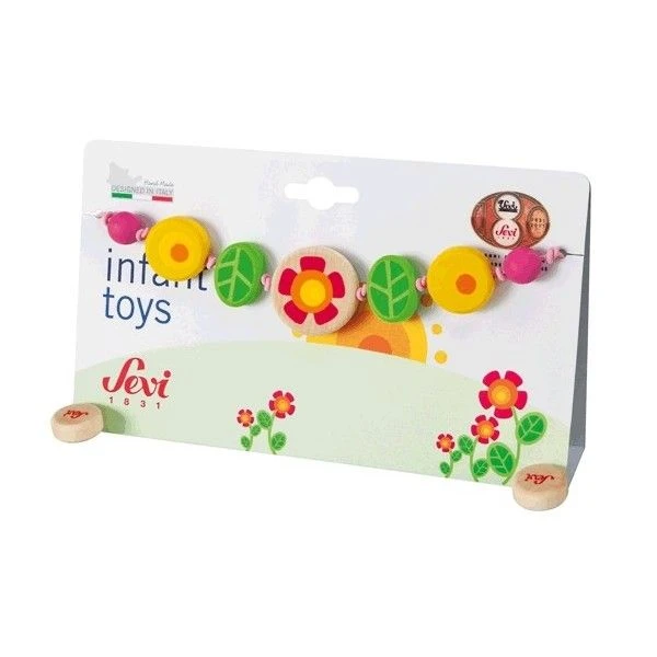 Les jouets en bois Chaine de poussette à fleur de la gamme ‘Infant Toys’ Sevi 1831 sont réalisés avec soin. Comme tous les jouets en bois Sevi 1831, ils sont fabriqués à partir de materiaux écologiques, sains et respectants les normes Européenes en la matière. Un jouet écologique conçu en Italie, et fabriqué avec soin en Asie par la société Trudi Spa.