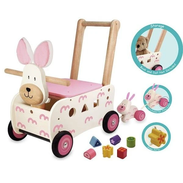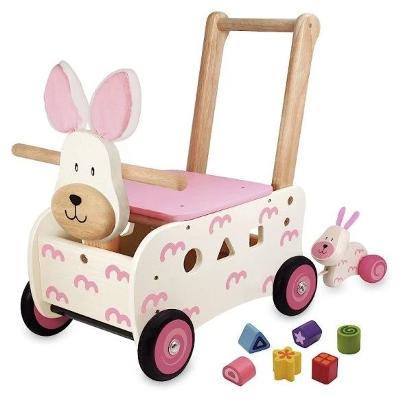 Chariot de marche en bois 3 en 1 Lapine Rosa Blanche I’m Toy® – Pour les petits promeneurs dés 12 mois éveil physique et émotionnel avec ce superbe Chariot de marche porteur 3 en 1, à la fois Chariot de marche, porteur et boîte à formes multi activités en bois d’hévéa issu de forêts gérées durablement…