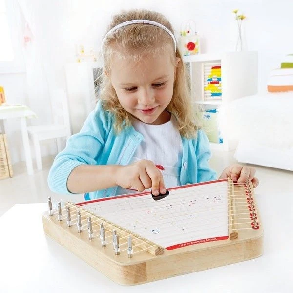 Pour les petits musiciens à partir de 36 mois, éveil physique, auditif et émotionnel avec cette superbe Cithare en bois Hape® adaptée aux doigts des petits. Un instrument pour enfant pour découvrir à son rythme, ses mélodies préférées. Un tout premier instrument à corde, pour développer la motricité fine, la dextérité, la coordination œil main.