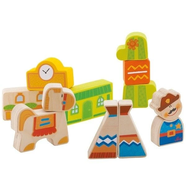 Pour les petits dés 12 mois, Eveil physique et emotionnel à la découverte du Far West et des Cow Boys, avec ce joli ensemble de Cubes et Formes Far West 30 pièces Sevi 1831. 30 pièces à assembler, empliller et organiser pour créer de jolis villages d’indiens et de Cow Boys et ainsi ré-inventer la fabuleuse conquête de l’Ouest Americain. Un jouet magnifique aux graphismes fins, ludiques et colorés. Un joli jeu pour développer l’imagination, la dextérité et pour acquérir de bien belles connaissances sur l’histoire qui à façonné l’Amérique!