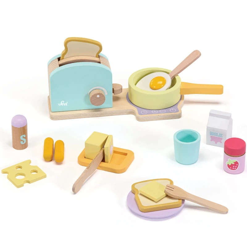 Pas un café rapide, mais un véritable coffret pour un petit-déjeuner complet, sucré et salé ! De nombreux accessoires pour préparer un excellent petit-déjeuner, vous pouvez cuisinez également un savoureux sandwich salé, accompagné de œufs au plat classiques. Faites griller le pain, étalez le beurre puis mettez la confiture, le tout accompagné d’une tasse de lait ! Tous les articles Sevi se caractérisent par un design joyeux et amusant et des couleurs vives. Toutes les peintures utilisées sont non toxiques et résistantes, dans le respect des réglementations les plus strictes en vigueur.