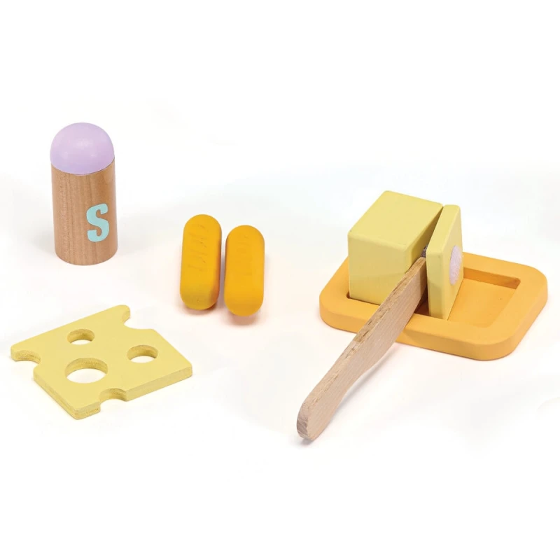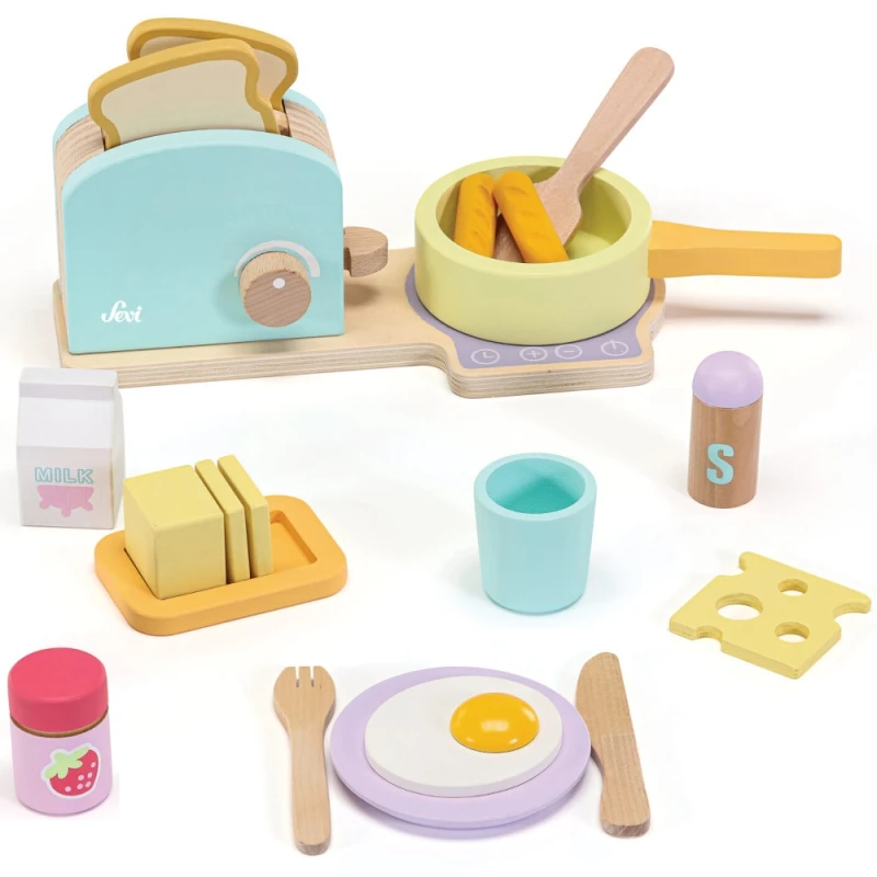 ✎ Les Dinettes Set Petit Déjeuner Coloré Girly avec plaque, grille pains et aliments Sevi 1831® détails