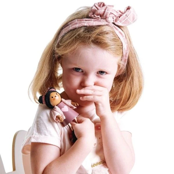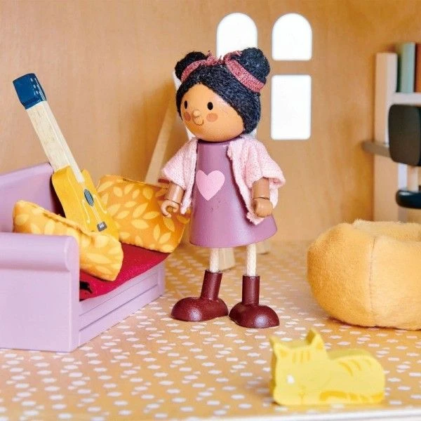 Pour les petits et pour se dégourdir les doigts à partir de 36 mois, éveil émotionnel et imagination avec cet amusant Figurine Maison de Poupées Ayana et son chat Tender Leaf Toys®. Une joli dame au faciès souriant, coiffée de deux macarons, habillée d’une robe à cœur rose, d’un gilet tricoté et accompagnée de son petit chat jaune…