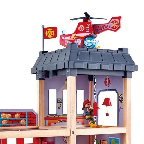 ✎ Les Grandes Casernes de Pompier en bois Hape® se composent et sont: