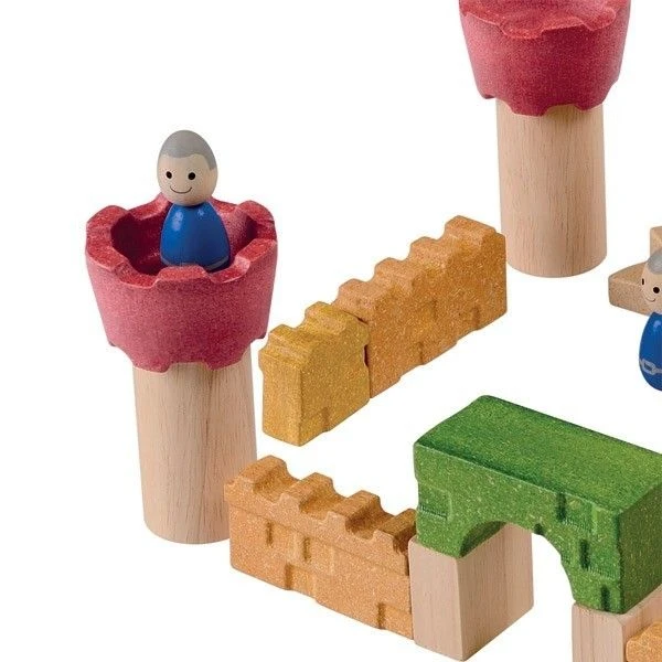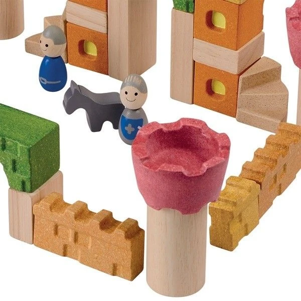 Les jouets en bois Plantoys Bloc de construction Chateau Fort, de la gamme ‘PlanWood Bloc & construction‘ sont réalisés avec soin à partir de bois d’hévéa sain et naturel, issus de forêts cultivées. PlanWood est une gamme de jouets fabriqués par un procédé unique, le moulage de la patte de Bois d’hévea, (l’arbre qui permet de de produire le Latex) associée à la colle E-Zero (colle respectueuse de la santé sans formaldéhydes). Le procédé, donne un bois composite trés résistant et permettant des moulages originaux, impossibles à réaliser avec le bois brut. Avec ‘PlanWood’, Plantoys s’ouvre les portes de nouvelles possibilités toujours plus créatives et rivalisant sans complexes avec les jouets synthétiques (plastiques etc…).