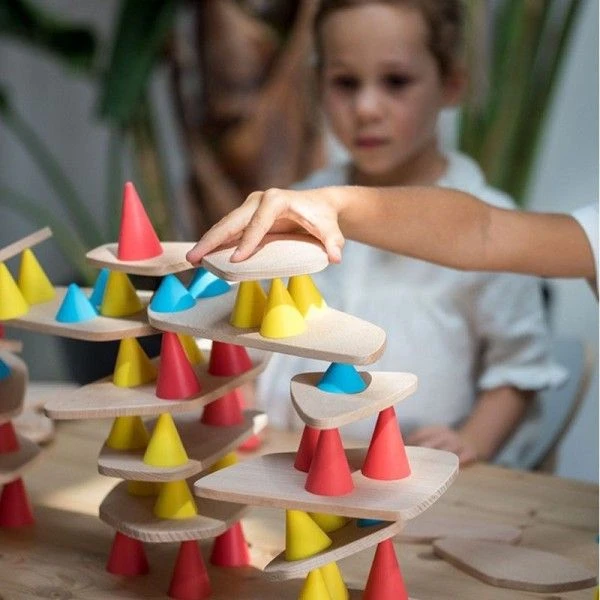 L’enfant devra choisir parmi trois tailles de cônes : petits, moyens et grands. Il les utilisera pour faire tenir les planchettes en bois, et pourra créer ainsi des constructions incroyables et originales : en biais, verticales, horizontales. Les possibilités sont infinies avec Piks ! L’enfant pourra jouer en jeu libre, seul ou avec ses amis. Un livret explicatif est fourni avec le Kit et propose plusieurs façons de jouer à Piks.