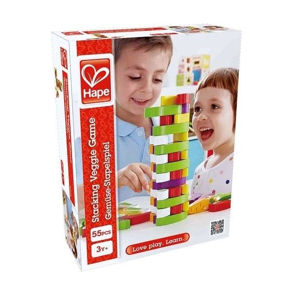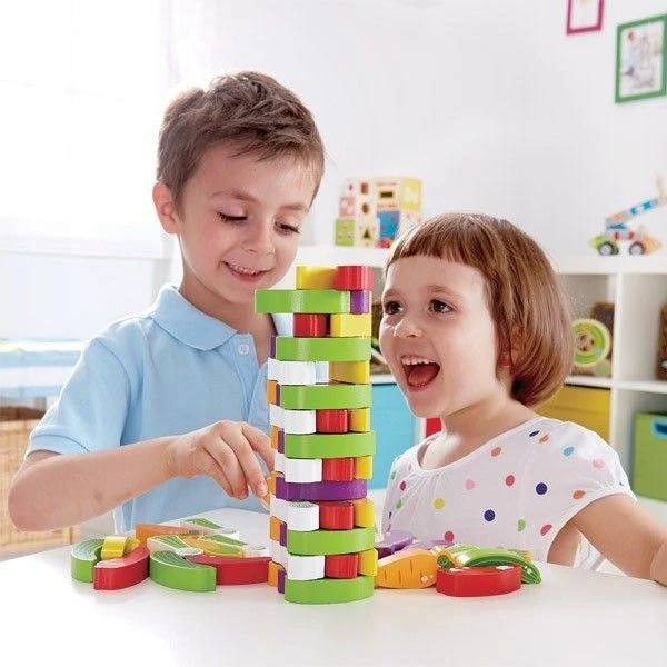 Pour les petits joueurs dès 36 mois, éveil social, physique et émotionnel avec cet amusant jeu de société Hape Jeu d’équilibre Tour de Légumes… 55 légumes à empiler avant de jouer aux dés et de les rétirer un par un chacun son tour en défiant l’équilibre de l’édifice. Un jeu de société pour fixer son attention, respecter des régles et jouer en communauté. Un jouet permettant aussi de favoriser la motricité fine, la coordination oeil/main.