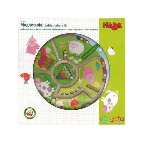 Les Jeux magnétiques Labyrinthe de Chiffres ‘A la Ferme’ HABA® sont réalisés avec soin. Comme tous les jouets en bois HABA®, ils sont fabriqués en Allemagne à partir de bois issus de forêts gérées durablement et depuis 2010 répondant à la norme PEFC. Chaque jouet répond strictement aux normes Européennes CE en matière de sécurité, norme certifiée par le laboratoire indépendant TUV, ayant accordé le Label GS.