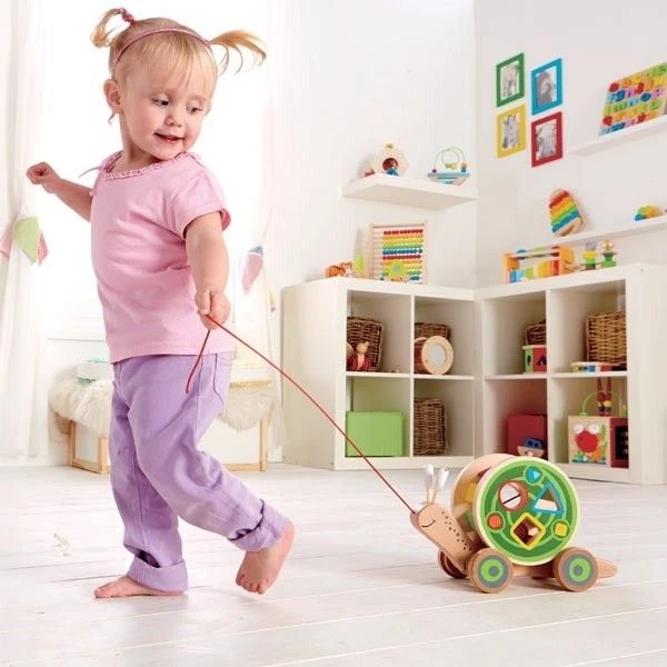 ✎ Les Jouets à tirer Escargot roulant avec jeu de formes Hape® détails