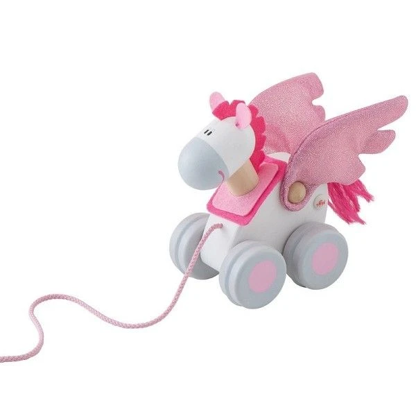 Pour les petits aventuriers de 12 mois éveil physique et émotionnel avec ce joli Cheval ailé ce ‘Jouet à trainer Cheval Pégase Rose & Blanc Sevi 1831′ qui permet de faciliter l’apprentissage de la marche, et d’oublier ses inquiétudes. Pégase est un cheval ailé divin, l’une des créatures fantastiques les plus célèbres de la mythologie grecques. Un joli petit Cheval Blancs à traîner, que nos petits écolos vont pouvoir promener partout dans la maison. Avec son mythique cheval Pégase, la marche et la recherche d’équilibre est un jeu d’enfant, distrait par son compagnon, bébé ne prête plus attention à ses petites angoisses et marche tranquillement. Un jouet ludique permettant d’acquérir et développer l’équilibre et la marche, un bon moyen de se promener partout dans la maison, et faire du ménage….