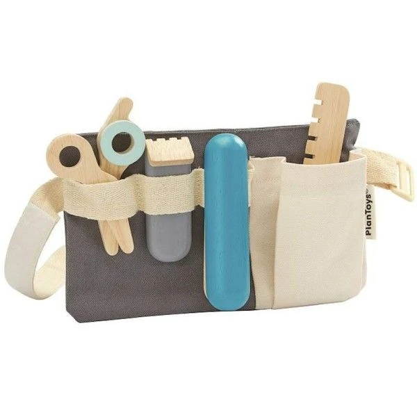 Pour les petits passionnés de mode et de beauté dés 36 mois, éveil émotionnel et jeu avec cette parfaite trousse de coiffure en coton bien assortie de tous les instruments en bois nécessaires à un bon coiffeur… Jouet d’imitation en bois Trousse de coiffure Plantoys®. Une trousse avec une ceinture pour la porter à la taille comme les vrais coiffeurs,… une trousse de coiffure remplie de magnifiques outils en bois d’hévéa massif: Peigne, lisseur, rasoir électrique, ciseaux et sèche cheveux. De quoi réaliser de belles mis en plis à ses petits frères et sœurs, …