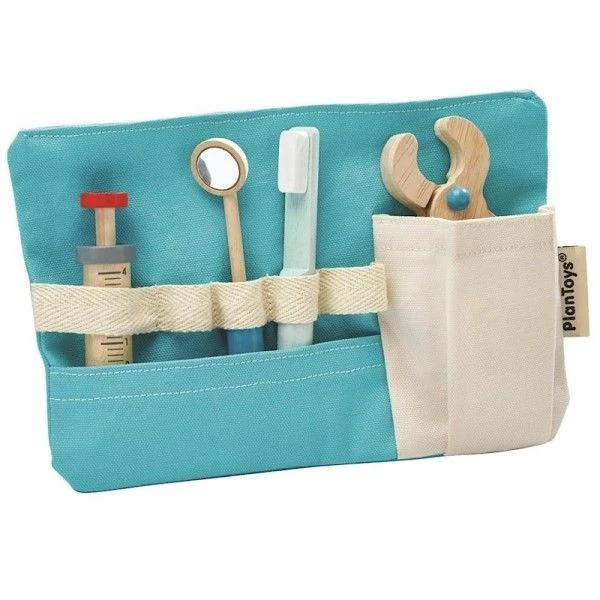✎ Les Jouet d’imitation en bois Trousse de Dentiste Plantoys® se composent et sont: