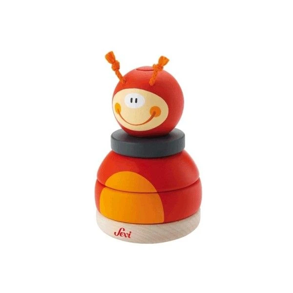 Pour les touts petits, éveil visuel, emotionel en douceur et en couleurs avec cette jolie Coccinelle, composée de cylindres de bois colorés, a monter et démonter à l’infini. Et avant de la remonter, les bambins jouent sans fin avec la base formant une toupie. Pour découvrir les formes, les couleurs et les emboitements, le tout sous l’oeil attentif de la petite coccinelle.
