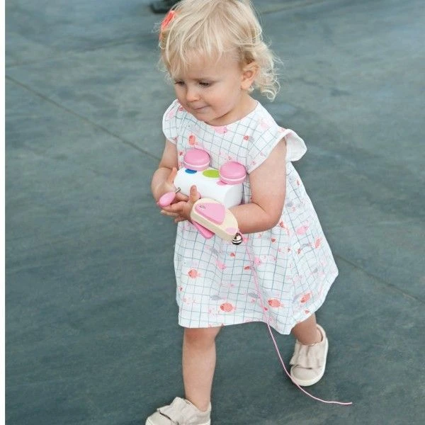 Ella est la petite soeur de Lily, une petite chienne en bois amusante avec un os dans la gueule. Un chouette compagnon de jeu avec qui se promener. Tire la ficelle, la clochette retentit et Ella roule derrière toi. Ella remue la queue et agite la tête. Tu peux lui tourner les oreilles et si tu appuies sur le bouton situé sur son dos, tu entendras un « tuut » retentir. Ella ne laisse aucune trace sur les sols grâce aux bandes en caoutchouc qui entourent ses pattes. Souhaites-tu l’emmener?