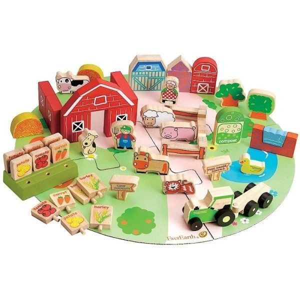 Pour les petits fermiers écolos, amoureux de nature, d’animaux et cultures et de tracteurs dés 24 mois, éveil physique et émotionnel avec cette très jolie ferme, Jouet en bois Cubes & Formes 53 pièces jeu ‘Ma ferme Bio’ EverEarth®. Pour développer l’apprentissage des couleurs, des animaux, des plantes, des activités d’une ferme et de ses élevages. Une jolie ferme multi activités pour s’amuser sans s’en rendre compte et acquérir ses premières compétences. Le jouet permet de développer la mobilité fine et la dextérité , l’apprentissage des animaux, des couleurs… Le monde de la ferme n’aura plus de secret pour les petits fermiers en herbe…