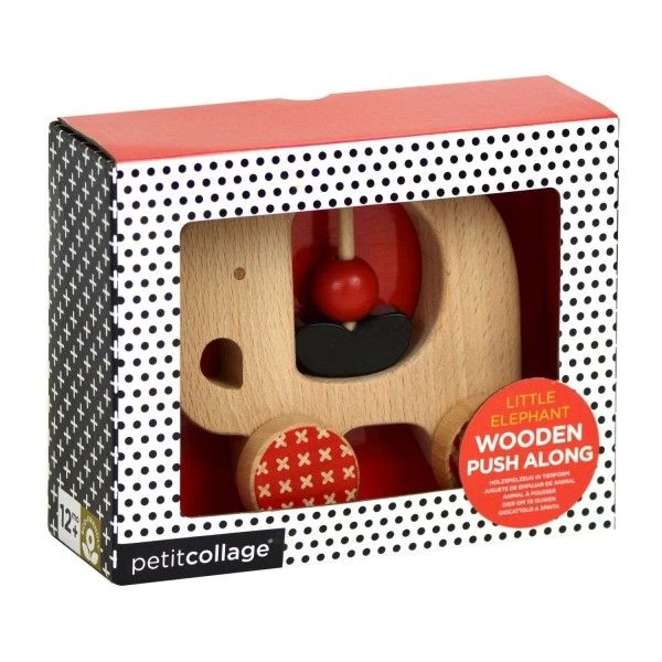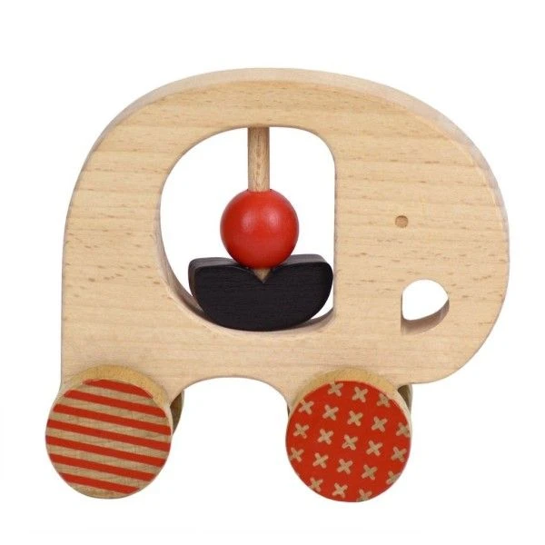 Les Jouets en bois Hochet Éléphant à Pousser Petitcollage® se composent et sont: