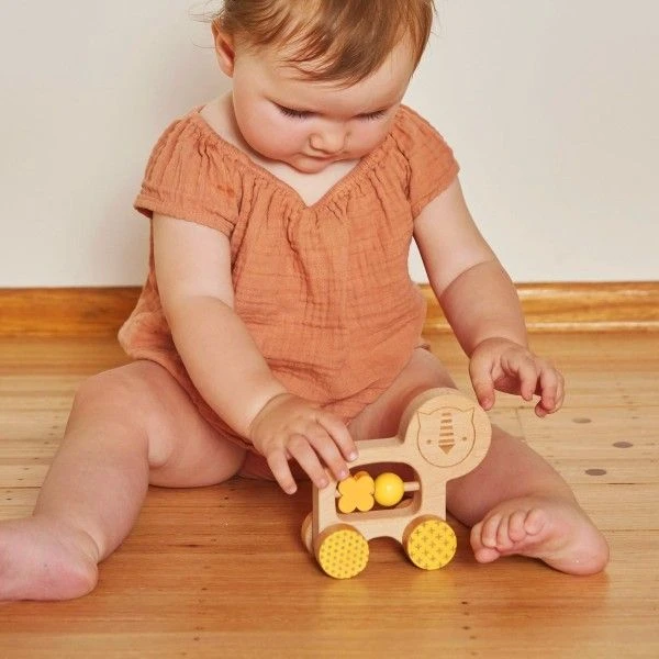 Ces jouets à pousser Petitcollage® robustes en bois de hêtre massif ont tous des roues lisses et de formes d’animaux simples et faciles à saisir pour encourager le jeu actif. Les grosses perles intégrées ajoutent une touche de couleur et font un bruit joyeux lorsque le jouet roule ou est secoué. Emballé dans une belle boîte parfaite pour une fête de naissance ou un cadeau pour enfants.