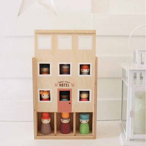 Dans le cadre de notre jeu ouvert, rencontrez les 9 personnes qui résident à l’hôtel heureux. Fabriqués à partir de bois massif, colorés avec une teinture à base d’eau douce, ils peuvent représenter n’importe qui que vous connaissez. Ces petites personnes sont parfaites pour s’ajouter à tout type de jeu créatif ou imaginatif, et peuvent être facilement perchées sur n’importe quelle surface.