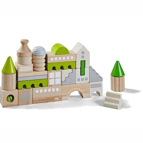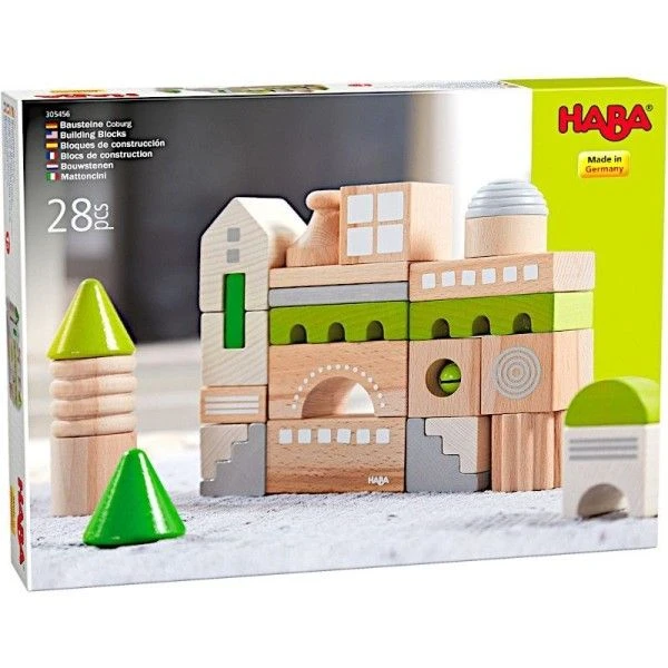 Pour les fans de construction dés 18 mois, éveil physique et émotionnel avec ce Jouet en bois Jeu de construction Coburg HABA®. Un jeu de construction, 28 blocs de bois pour construire une petite ville allemande. Un jouet pour développer ses capacités créatives, la dextérité, la coordination oeil-main tout en s’amusant.