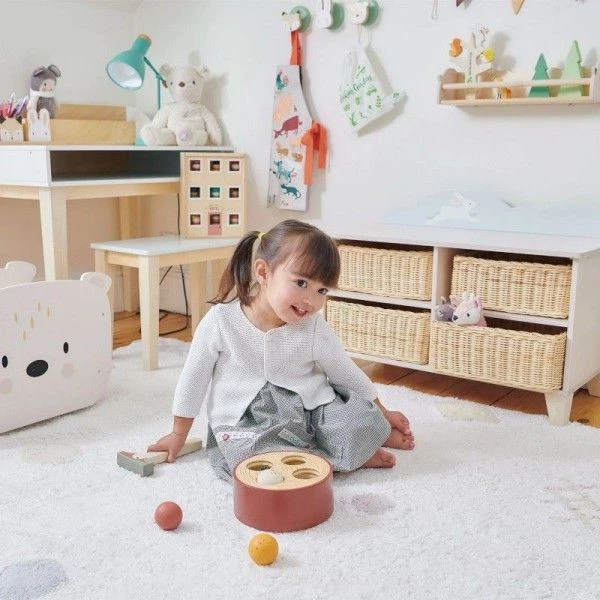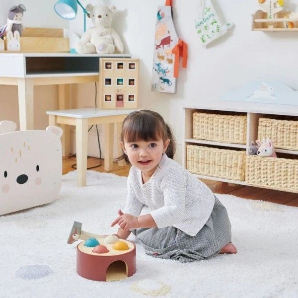 Pour les bébés écolo et amoureux de nature dés 18 mois, éveil émotionnel et physique avec cet amusant Jouet en bois Jeu de marteau Pic vert Tender Leaf Toys®. Un tronc de bois sur lequel les petits pourront frapper pour faire tomber les boules de bois joliment colorés et au faciès de petits verre… à l’aide du marteau en forme de pic vert. Ramassez les boules lorsqu’elles tombent dans le trou et recommencez. Pas facile de réussir sans se taper sur les doigts mais avec un peu d’exercice, nos petits héros de la forêt s’y retrouvent, développent dextérité et confiance. Un jouet en bois premier âge pour se dégourdir les doigts, et développer précision et dextérité dans une amusante ambiance forestière….