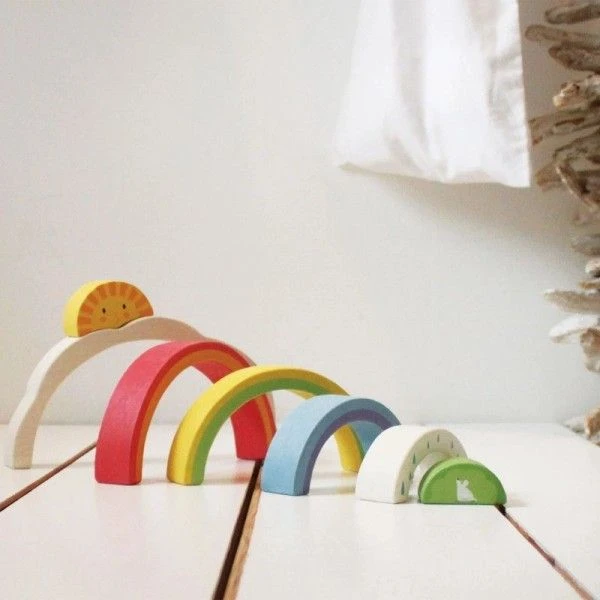 Pour les fans de couleurs dés 18 mois, éveil émotionnel et développement de la motricité fine avec ce Jouet en bois Puzzle Tunnel Arc -en-ciel Tender Leaf Toys®. Un jeu ouvert qui invite à la créativité avec ses 5 arc de cercle en bois aux jolies couleurs d’arc en ciel, le soleil bienveillant et la petite souris qui regarde la pluie tomber. Ce design coloré permet de développer la reconnaissance des couleurs et stimule l’imagination. Ce jeu à empiler encourage l’apprentissage précoce par le jeu en développant la coordination main-oeil et la motricité fine. Les petits mains peuvent facilement saisir les pièces de bois d’hévéa et créer une multitude de formes selon l’imagination du moment.