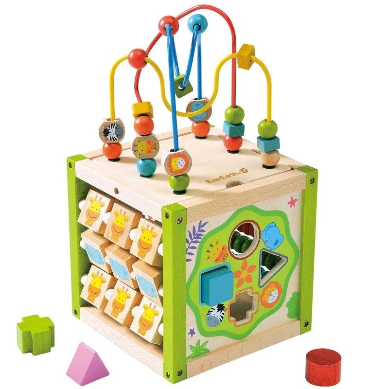 Pour les petits bambins en mal d’activités, éveil émotionnel avec ce magnifique cube d’activités ambiance africaine et ses 5 faces d’activités. Pour développer l’apprentissage des couleurs, des formes, les nombres, les heures, les labyrinthes, et apprendre à compter comme développer sa motricité fine grace au looping. Un cube multi activités pour s’amuser sans s’en rendre compte et acquérir ses premières compétences.