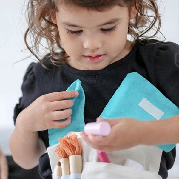 Eveil physique et émotionnel avec cette jolie Trousse ceinture de maquillage en coton garnie de ses ustensiles en bois Jouet Trousse maquillage Enfant Plantoys®, pour imiter les grandes. Une petite panoplie bien remplie de tous les bluchs, sticks à lèvres, crayons, poudriers etc….
