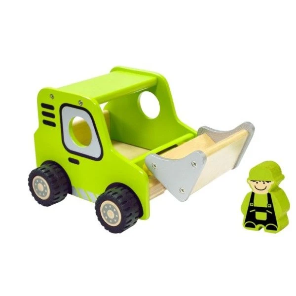 Jouets en bois Bulldozer Vert  I’m Toy® – Pour les petits dés 18 mois éveil physique et émotionnel avec ce joli petit camion chargeur Bulldozer vert, solide et facile à prendre en main, en bois issu de forêts …