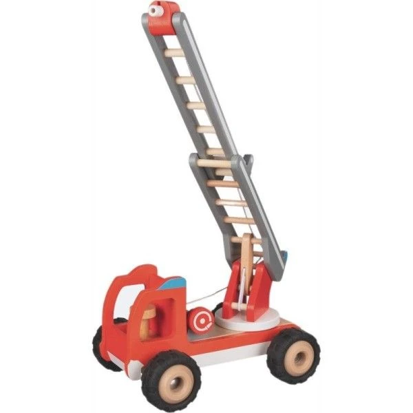✎ Les Jouets en bois Camion de pompier avec échelle Goki® se composent et sont: