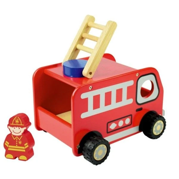 Jouets en bois Camion Pompiers I’m Toy®- Pour les petits dés 18 mois éveil physique et émotionnel avec ce beau camion pompier  rouge, solide et facile à prendre en main, en bois issu de forêts …