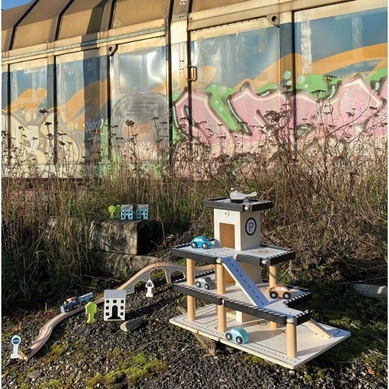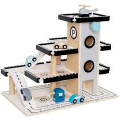 Jouets en bois Garage Petites Voitures Tour hélicoptère Jabadabado®  – Pour les petites amoureux de petites voitures dés 24 mois, éveil physique et émotionnel avec ce magnifique garage à étages.