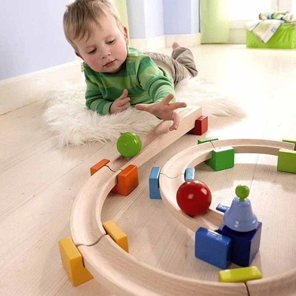 Jouets en bois ‘Mon Premier Toboggan à Billes’ HABA® (boîte de base) – Pour les petits bâtisseurs en découverte de sensations visuelles et auditives dès 18 mois, ce circuit billes facile à installer et stable fera des heureux….