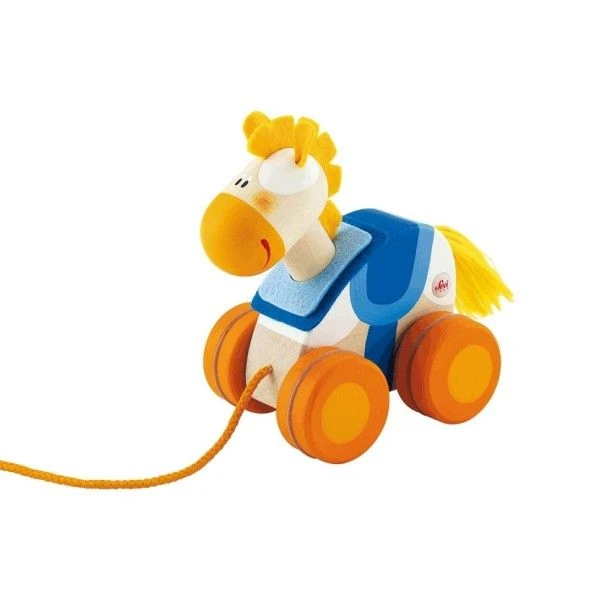 Pour les petits, éveil physique, visuel, émotionnel et en couleurs avec ce joli jouet en bois à tirer en forme de cheval. Parfaitement reproduit avec sa petite crinière et son look far west, c’est le compagnon idéal pour développer l’autonomie, la découverte de son environnement et donc apprendre à marcher. Pour se promener partout dans la maison avec son dada…