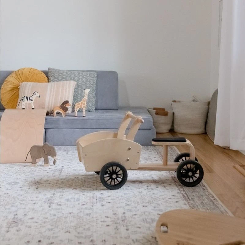 Inspiré des Bakfiets néerlandais, le vélo cargo Kinderfeets est un vélo à pousser à 4 roues avec un grand espace de chargement à l’avant pour les jouets, les trésors et les amis en peluche. Les pneus sans air EVA protègent les surfaces des rayures et garantissent une conduite stable et fluide. En utilisant leurs pieds pour propulser le vélo, les enfants se développent physiquement de différentes manières !Invitez votre enfant à tester sa mobilité, à développer sa motricité globale et à améliorer son équilibre et sa coordination grâce à un jeu actif avec un véhicule qui peut être monté, poussé, tiré ou utilisé comme espace de rangement. Regardez-les gagner en confiance tout en naviguant et découvrez les trésors qu’ils trouvent au cours de leurs aventures ! Fabriqué à partir de bois de bouleau de source durable, de peintures à base d’eau, le vélo cargo offre, aux tout-petits actifs âgés de 12 mois et plus, la chance d’explorer la vie sur roues avec leurs jouets et animaux en peluche préférés pendant le trajet.