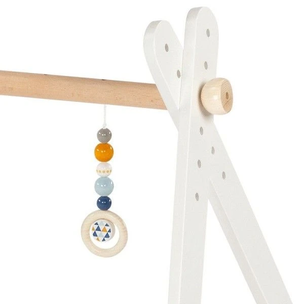 Pour les petits rêveurs dés 6 mois et pour développer attention et dextérité, éveil physique et émotionnel, ce superbe Portique d’activité en bois Géométrie Ocre Heimess® est très animé et coloré. Un portique d’éveil avec ses 3 hochets d’activités et son décor géométrique… le tout suspendu au trapèze pour permettre à bébé de stimuler ses petits muscles en découvrant les mouvements, les tintements des hochets, et les autres bruits produits par le mouvement des pièces qui le compose. Tout est fait pour stimuler bébé dans son apprentissage et son développement. De la position allongée, bébé va rapidement essayer de se redresser motivé par les anneaux de bois situés sur les côtés, les différentes formes et couleurs et surtout notre amusant petit écureuil. Pour rester à bonne distance des petits doigts, le portique dispose de 6 positions permettant de baisser et élever le trapèze.
