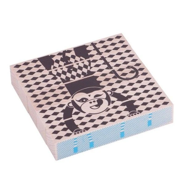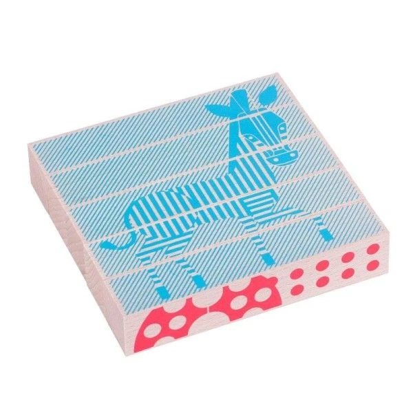 Pour les petits dés 2 ans, éveil physique et émotionnel avec ce Puzzle 4 en 1 Animals blocks Les Jouets Libres® en bois brut. Les 5 blocs rectangulaires permettent de réaliser 4 jolis animaux sur chaque face: une girafe rouge, un singe noir, un zèbre bleu et un lion jaune…Une motivation pour bébé que de rassembler par couleur les bonnes faces et les assembler pour former de les animaux. Un joli jouet à découvrir et qui sera l’occasion de nommer couleurs, animaux et s’amuser à associer les blocs…