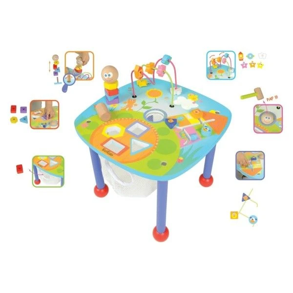 Pour les petits des 24 mois, éveil visuel et sensoriel en douceur et en couleur avec ce magnifique ensemble activité. Une table d’activité pour bébé amoureux de nature et de grands espaces. Avec ce jouet en bois Table Multi Activités en bois ‘Mon Jardin’ Boikido nos petits aventuriers pourrons se dégourdir doigts et méninges, tout en développant leurs aptitudes de concentrations sur le zig zag, looping, la boite à formes et ses labyrinthes à formes. Pour découvrir les premières formes, les couleurs et developper tout doucement la motricité fine, et developper son imagination.