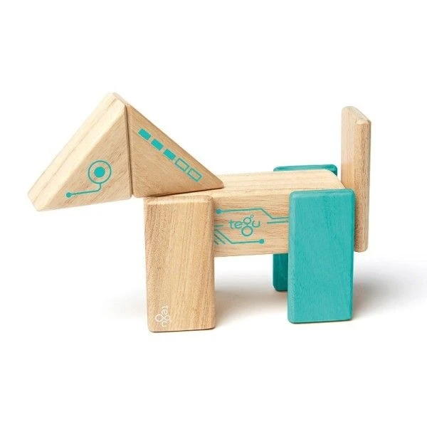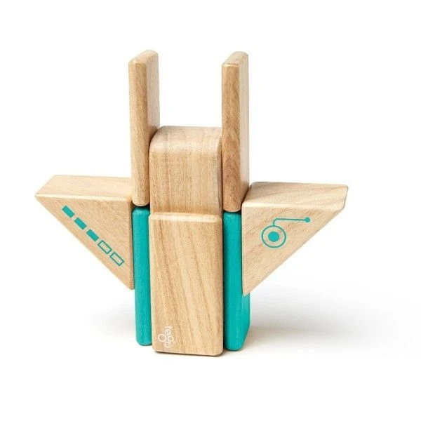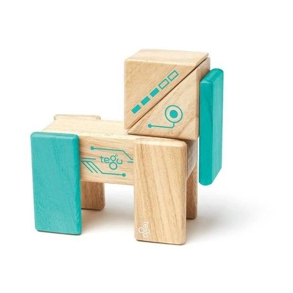 Pour les petits dés 12 mois, éveil physique et créativité avec Tegu® et ce magnifique petit set de formes ‘blocs’ en bois couleur naturelle et turquoise, imprimées d’un joli motif futuriste, et astucieusement aimantées: ‘Tegu® Set Robot Cubes en bois Magnétiques’. 8 blocs en formes planchette, colonne, et triangle aux couleurs tendres et naturelles, délicatement imprimées de petits motifs futuristes … contenant des petits aimants pour les rendre magiques et extra-ordinairement créatifs. Naturel et Joliment teintés couleur turquoise et laissant apparaître les veines du bois, chaque forme contient un aimant qui permet de le connecter à une autre et former des assemblages originaux au gré de l’imagination de nos petits magiciens. En bois de Feuillus Honduriens, teintés et laqués à partir de teintes et vernis respectueux de la nature, les 8 blocks sont livrés avec dans un jolie boîte.