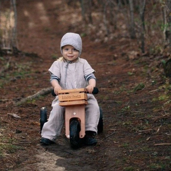 Avec une draisienne en bois Kinderfeets® , les enfants commencent à marcher sur le vélo en avant, puis à se mettre en position assise et à marcher, puis à s’asseoir et à courir, et finalement se déplacer et lever les pieds du sol. Ce processus peut prendre un jour ou deux ou quelques mois selon l’âge et la préparation de l’enfant. Cependant, il s’agit d’un processus amusant et facile,… en même temps, l’enfant développe des compétences d’équilibre et de coordination.